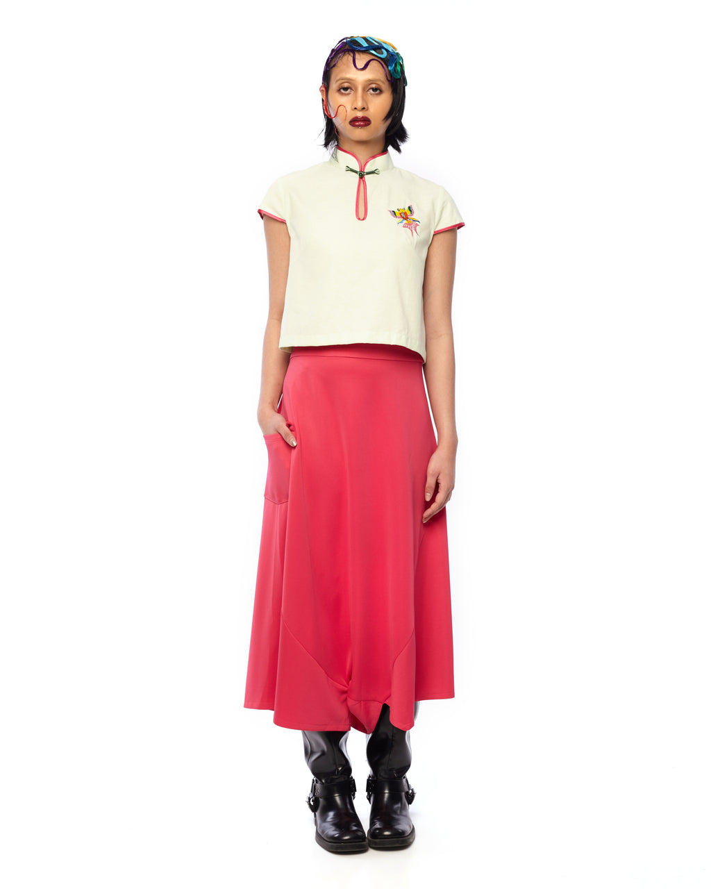 **Note - Top not included, please visit https://mell.com.my/products/mandarin-collar-crop-top-with-digital-embroidery-fish-patch-light-green