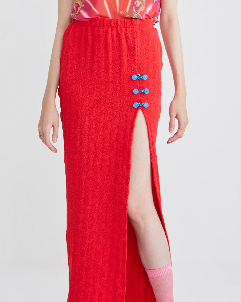 - High slit at the front